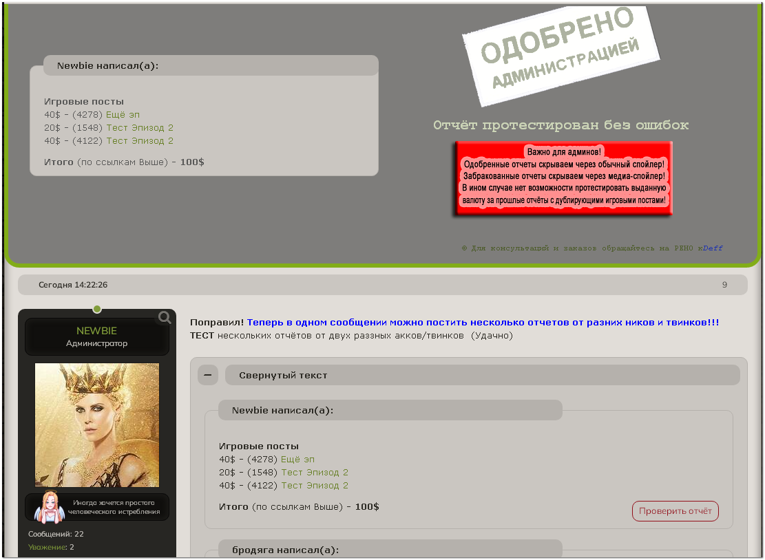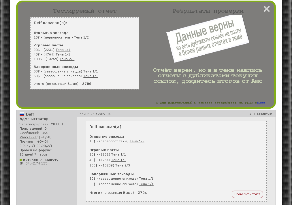 Скрипт создания фин. отчетов по игровым постам и автоматической их проверки