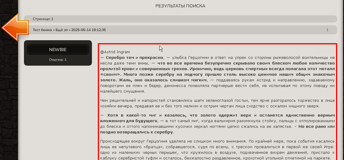 Выбор нужных постов в теме поиска по нику и возврат в банк(оранжевая кнопа)
